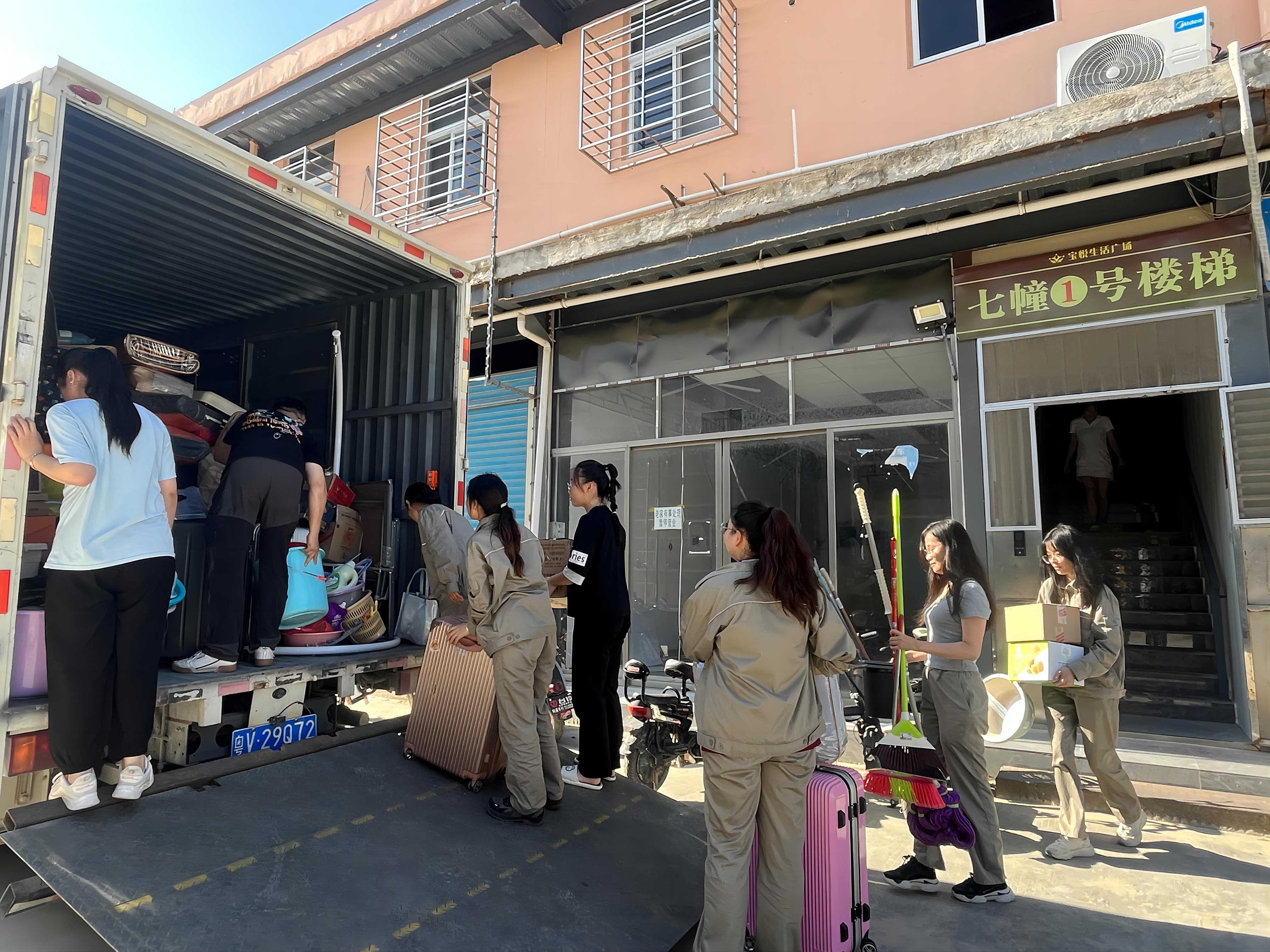 定下房源之后,員工們對(duì)新宿舍的期待值拉滿,新宿舍成了大家討論的熱點(diǎn)話題:“新宿舍幾人間啊?”“可以自己選室友嗎?”“聽說新宿舍旁邊有肯德基!”“宿舍有陽臺(tái)嗎?”經(jīng)過一段時(shí)間的精心準(zhǔn)備,至秋分這天,新宿舍通水通電,食堂也全部裝修完畢,具備入住條件,公司通知全體員工準(zhǔn)備搬遷。在一片歡騰聲中,大家回到舊宿舍認(rèn)真打包行李物品,忙得熱火朝天。在女生宿舍搬遷過程中,不少男同事積極幫忙,將行李物品裝車,到達(dá)新公寓后又卸貨,汗如雨下,累并快樂著。
