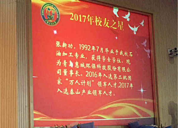 日前,我公司董事長(zhǎng)張新功獲評(píng)中國(guó)石油大學(xué)(華東)“校友之星”榮譽(yù)稱(chēng)號(hào)。10月2日,張新功董事長(zhǎng)受邀出席“追求卓越、砥礪前行”主題校友返校日慶祝大會(huì)并接受“校友之星”榮譽(yù)表彰。大會(huì)共表彰了9位在本職崗位上勇于開(kāi)拓、不斷創(chuàng)新、業(yè)績(jī)卓越、為國(guó)家發(fā)展建設(shè)做出重大貢獻(xiàn)的杰出校友。