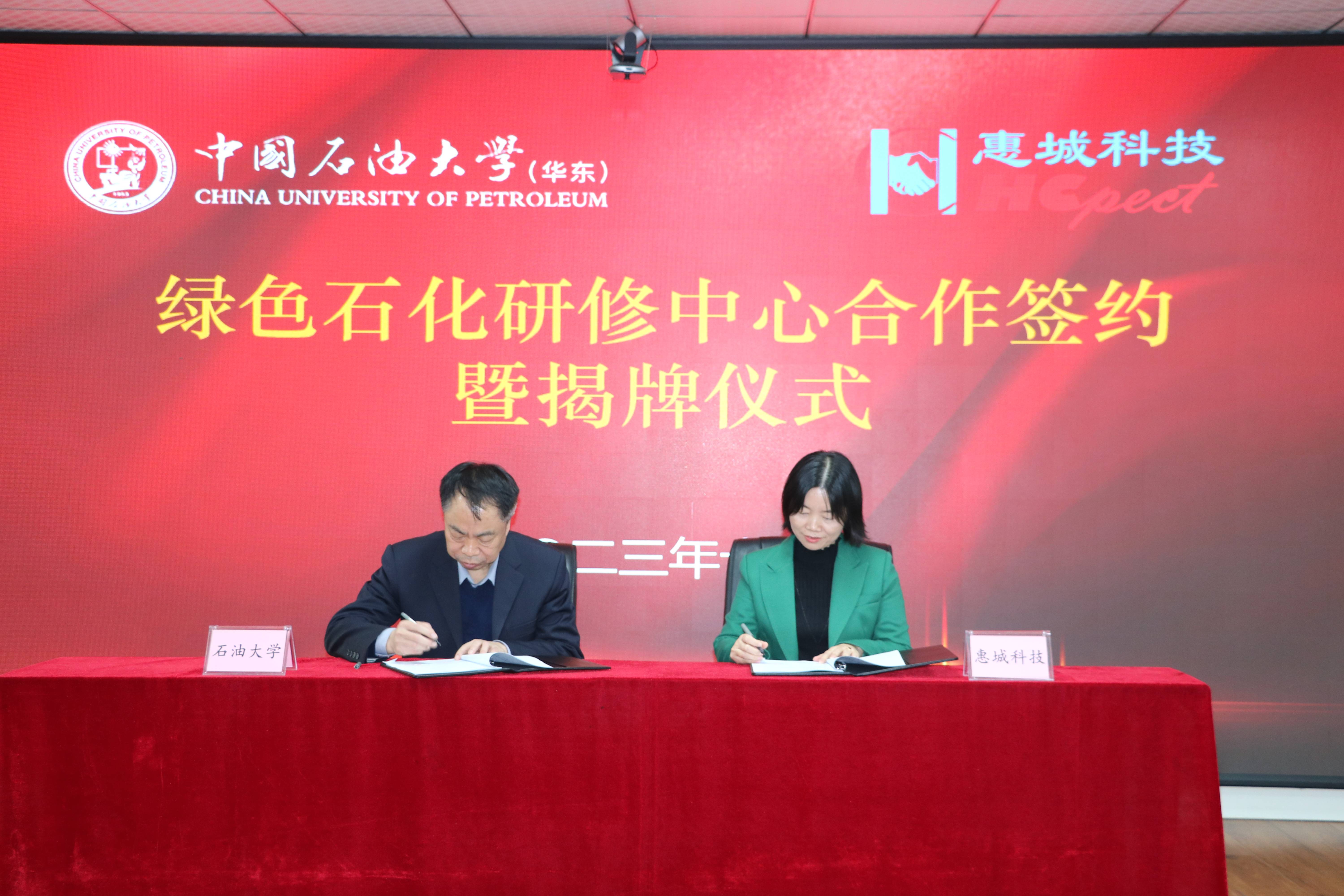 會(huì)議中,主持人首先就綠色石化研修中心合作背景、合作開展情況進(jìn)行了介紹,中國石油大學(xué)(華東)教育發(fā)展中心主任韓紅江、惠城環(huán)保董事長葉紅代表雙方上臺(tái)簽約揭牌,并發(fā)表致辭,隨后展開了座談交流。